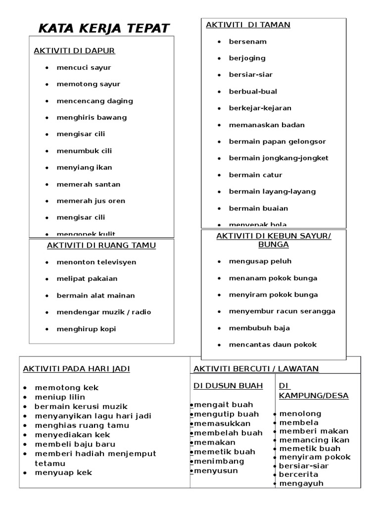 Aktiviti di dapur mencuci sayur memotong sayur mencencang daging menghiris bawang mengisar cili menumbuk cili menyiang ikan memerah. Tugas kata kerja boleh menentukan kompleksiti tugas bagi sesuatu gred jawatan. Oleh itu untuk melihat nota kata kerja hampir 140 slides ini boleh rujuk di bawah.